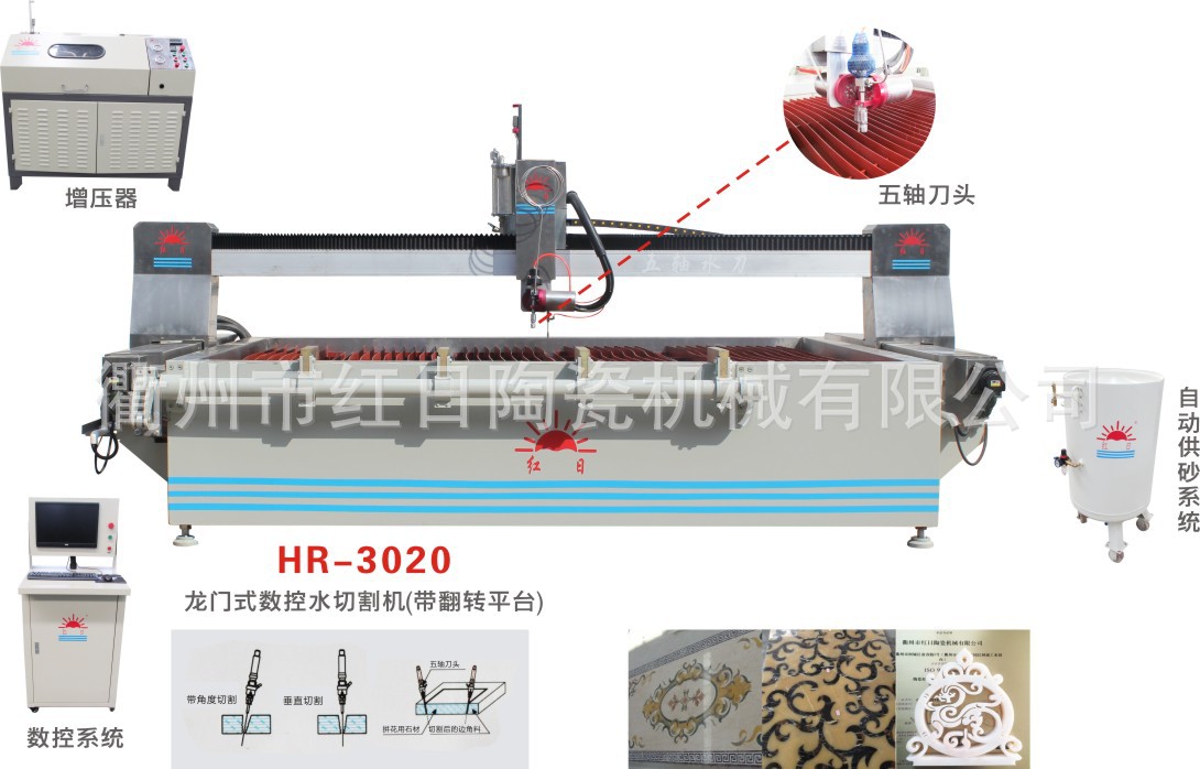 1、數控水切割機,配有全封閉軸向導軌系統;